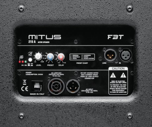• Pannello di controllo con XLR input e link, volume, presets, filtro-HP, ground-lift